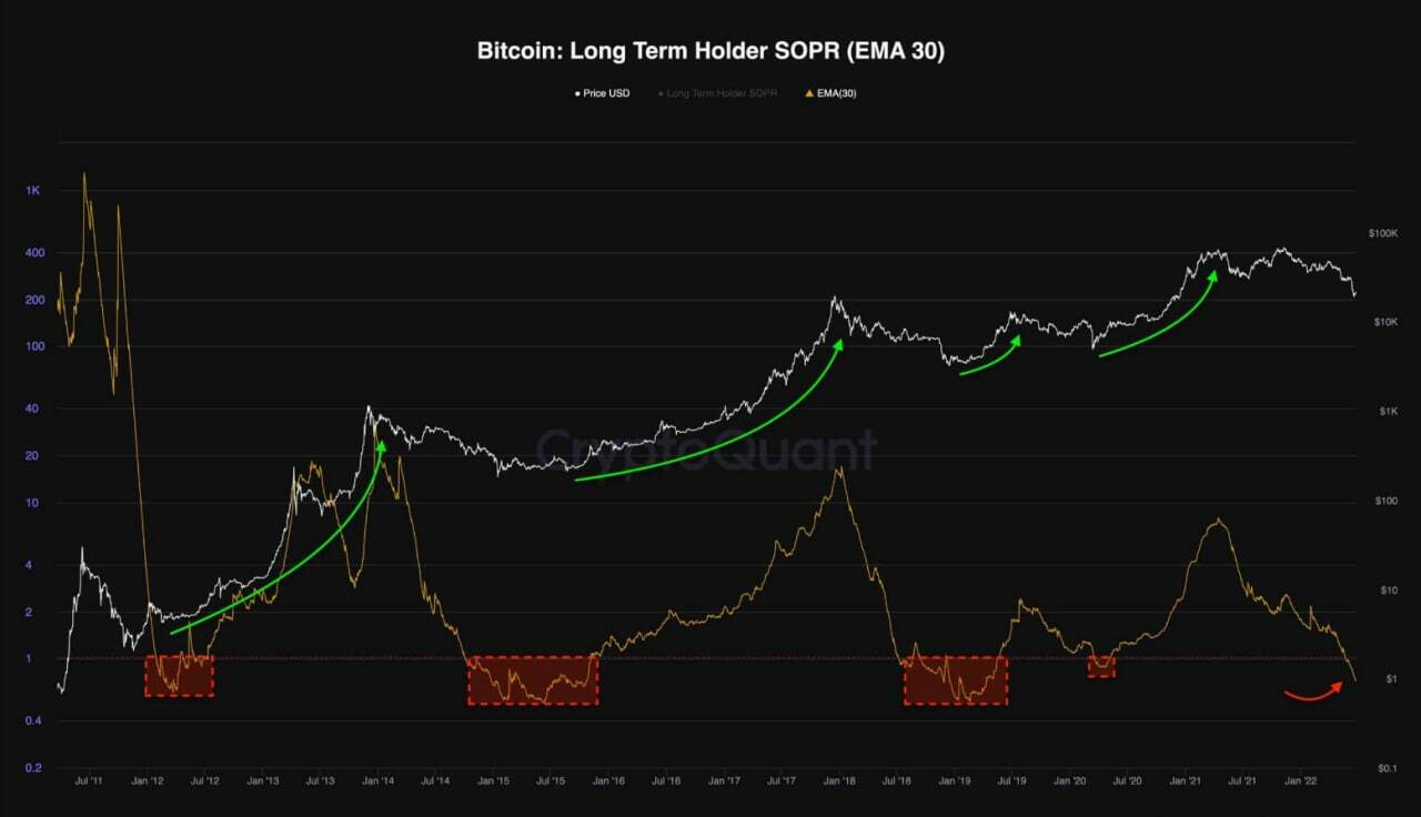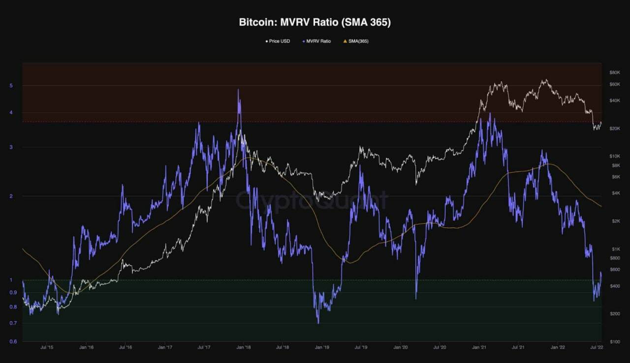Как показано на графике, значения ниже 1 указывают на усиление давления со стороны продавцов и совпадают с медвежьим движением цены. И наоборот, значения выше единицы, как правило, приводят к бычьему ценовому движению. Этот показатель пробился выше единицы, и цена, похоже, консолидируется и потенциально начинает бычий тренд в краткосрочной перспективе.