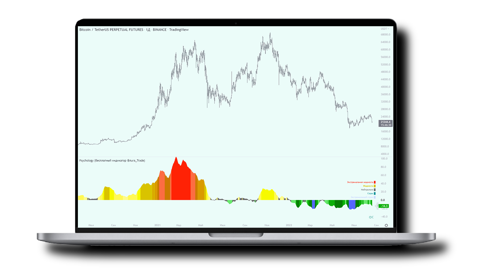 Трудно с уверенностью предсказать, где именно мы находимся в рыночном цикле, мы можем только сделать обоснованное предположение относительно приблизительной стадии, основываясь на имеющихся данных. А вот и индикатор "Психология трейдинга - Индекс страха и жадности".