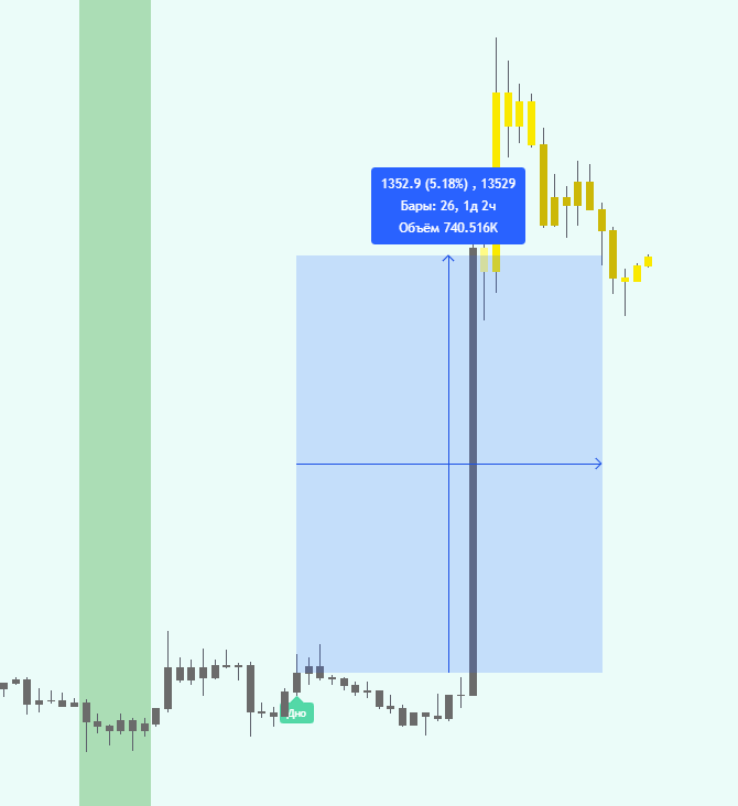 Произошел памп, цена пошла в нужную нам сторону. Crowd Mood отобразил жадность - это означает вероятность коррекции. Закрыли позицию.