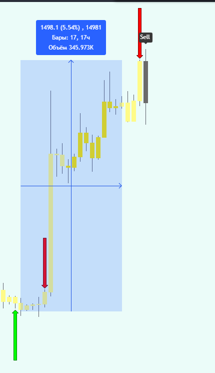 Спустя определенное время появился сигнал в лонг от Nearby. Он является сильным индикатором, поэтому на основании этих двух сигналов мы открываем позицию в лонг.