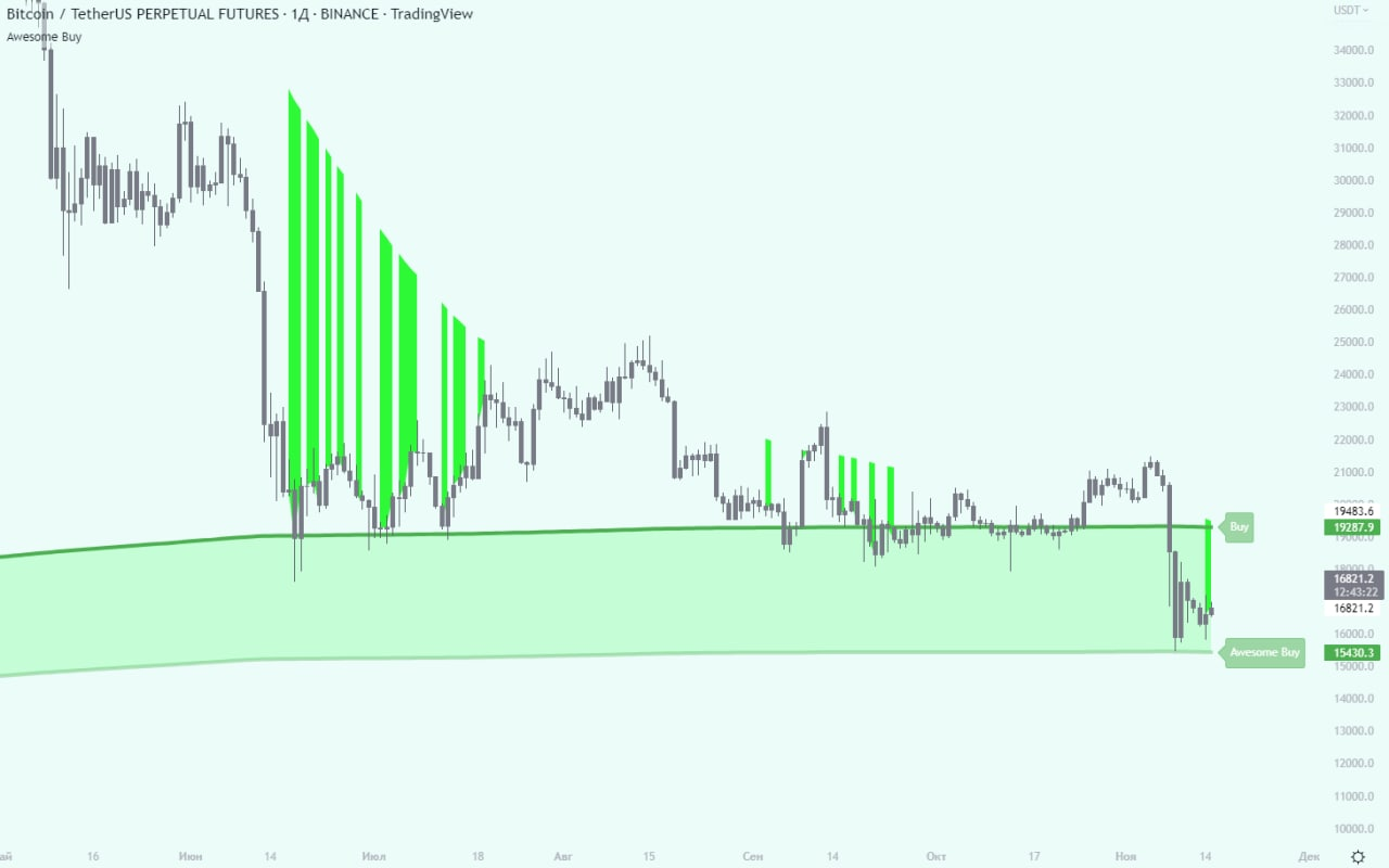 В данной ситуации Nearby указал лонг в то время, как цена нашла поддержку на уровне 26063, от этого уровня заходим в лонг. В качестве тейк профитов выставляем 3 следующих уровня: 26597, 27132, 27462, а стоп лосс - 25733.